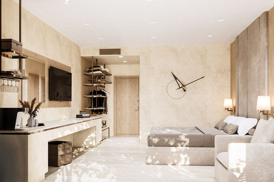 Furnished with style and taste, cozy and comfortable, this bungalow is ideal for families with 1 child. It is equipped with a large bed with luxury linen, a sofa armchair (chair) and solid curtains for a restful sleep. It has an LCD TV with satellite TV, Wi-Fi, air conditioning, refrigerator, valuable safe, thermal and coffee machine. The bathroom is equipped with a shower, high quality cosmetics, luxury towels and a hairdryer.